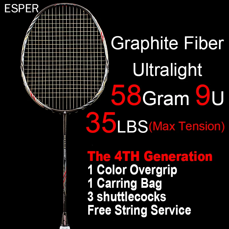 Esper Badminton Racket 58Gram Ultralight 9U Carbon Fiber Badminton Racquet 4th Generation Super Off